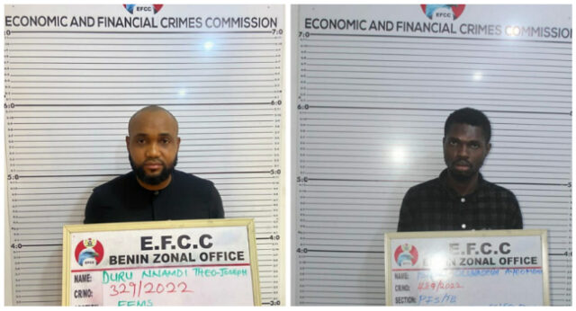 Duru and Ayoomoni were convicted, after pleading guilty to one- count separate charge, bordering on, retention of proceeds of criminal conduct and possession of documents containing false pretense, upon their arraignment by the Benin Zonal Command of the Economic and Financial Crimes Commission, EFCC.