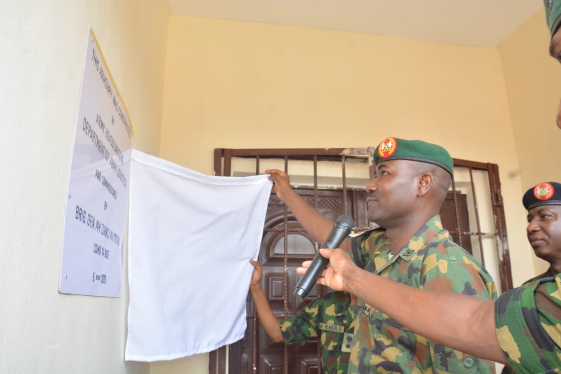 As part of the visit, General Dikko commissioned a newly constructed armoury built by the Army Headquarters Department of Logistics. The facility was commissioned on behalf of the General Officer Commanding (GOC) 82 Division, Major General Oluyemi Fadairo.