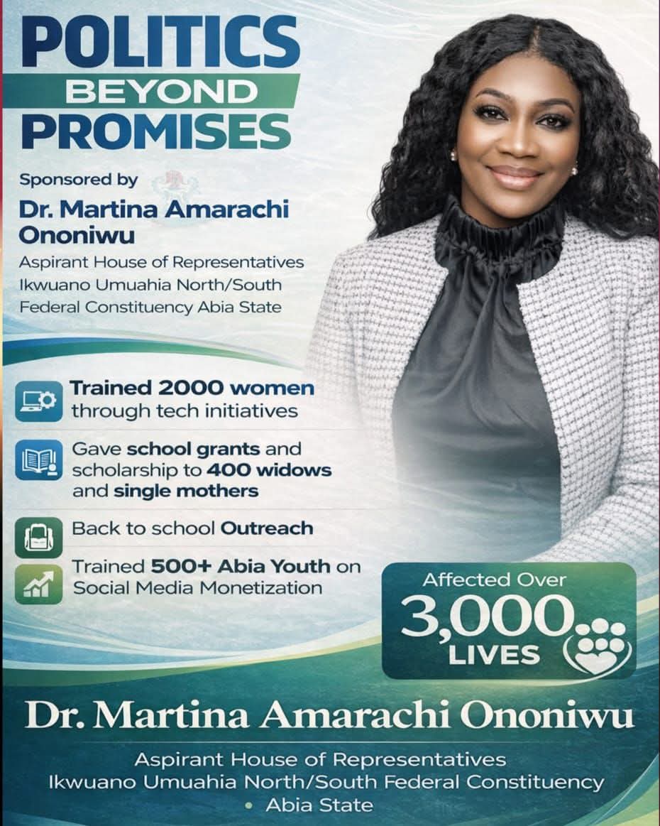 Aspirant for the Ikwuano/Umuahia Federal House of Representatives seat, Dr. Martina Amarachi Ononiwu, has called for a shift from traditional political narratives to performance-driven leadership, as she intensifies her 2027 campaign under the All Progressives Congress (APC).