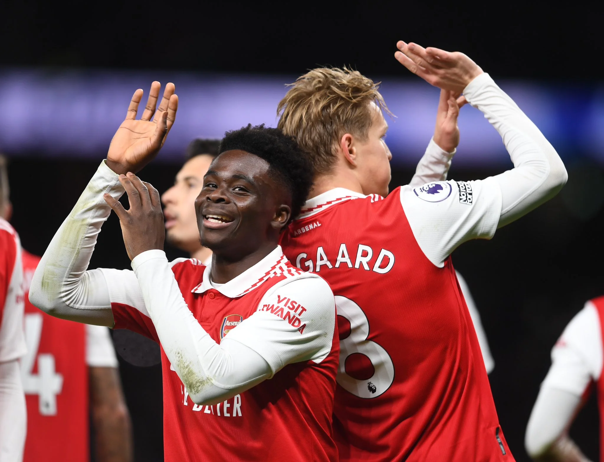 Saka, 24, celebrated becoming the fourth youngest player to reach 300 games for Arsenal with the deflected first-half strike that sealed a priceless result at the Amex Stadium.