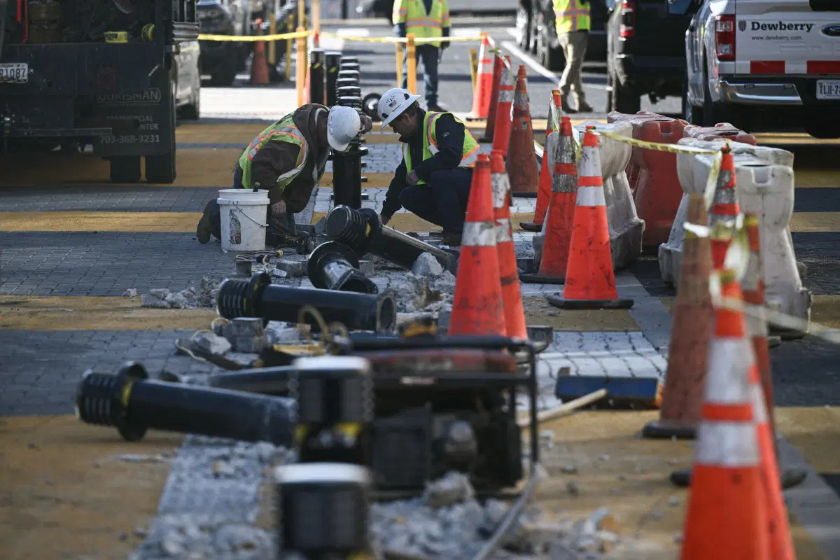 As jackhammers plowed away Monday at the pavement, numerous onlookers snapped photos of the work.