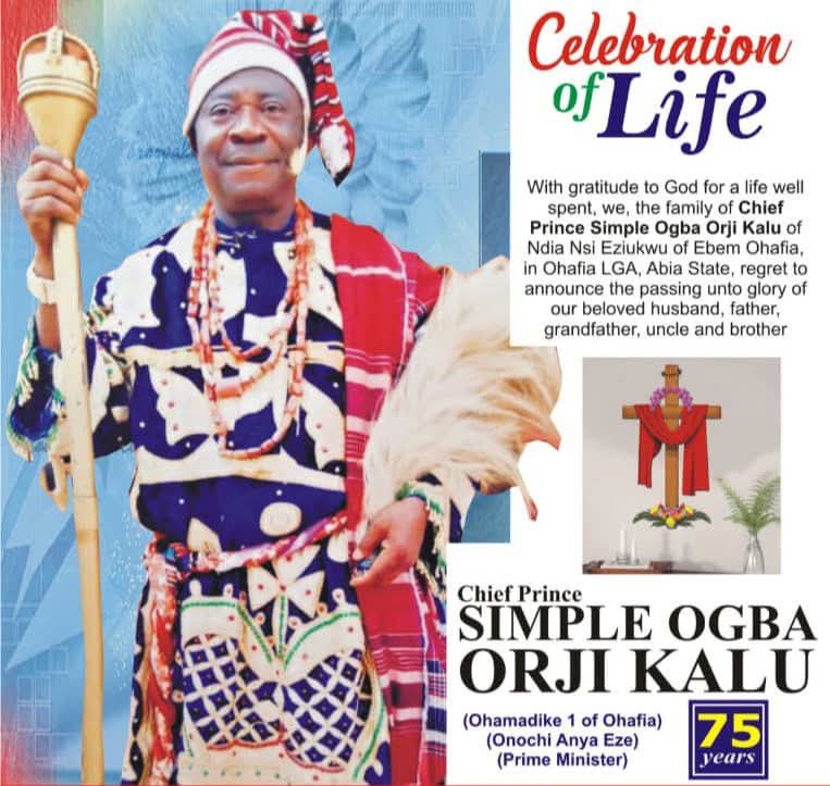 The family of Chief Prince Simple Ogba Orji Kalu extends their appreciation to all who joined in honoring his life and memory.