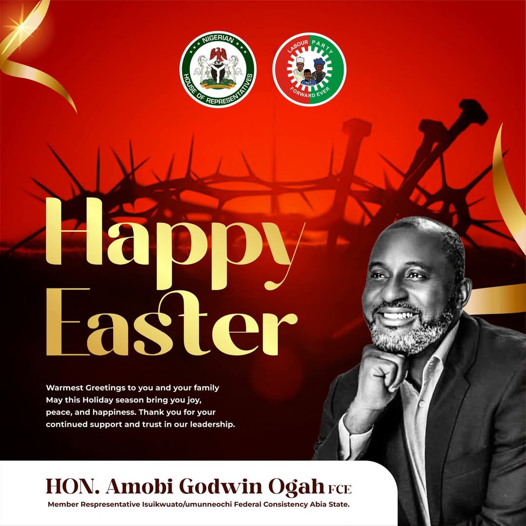 The Member representing Isuikwuato/Umunneochi Federal Constituency in the National Assembly, Hon. Amobi Godwin Ogah FCE, has extended warm Easter greetings to Christians across his constituency and beyond.