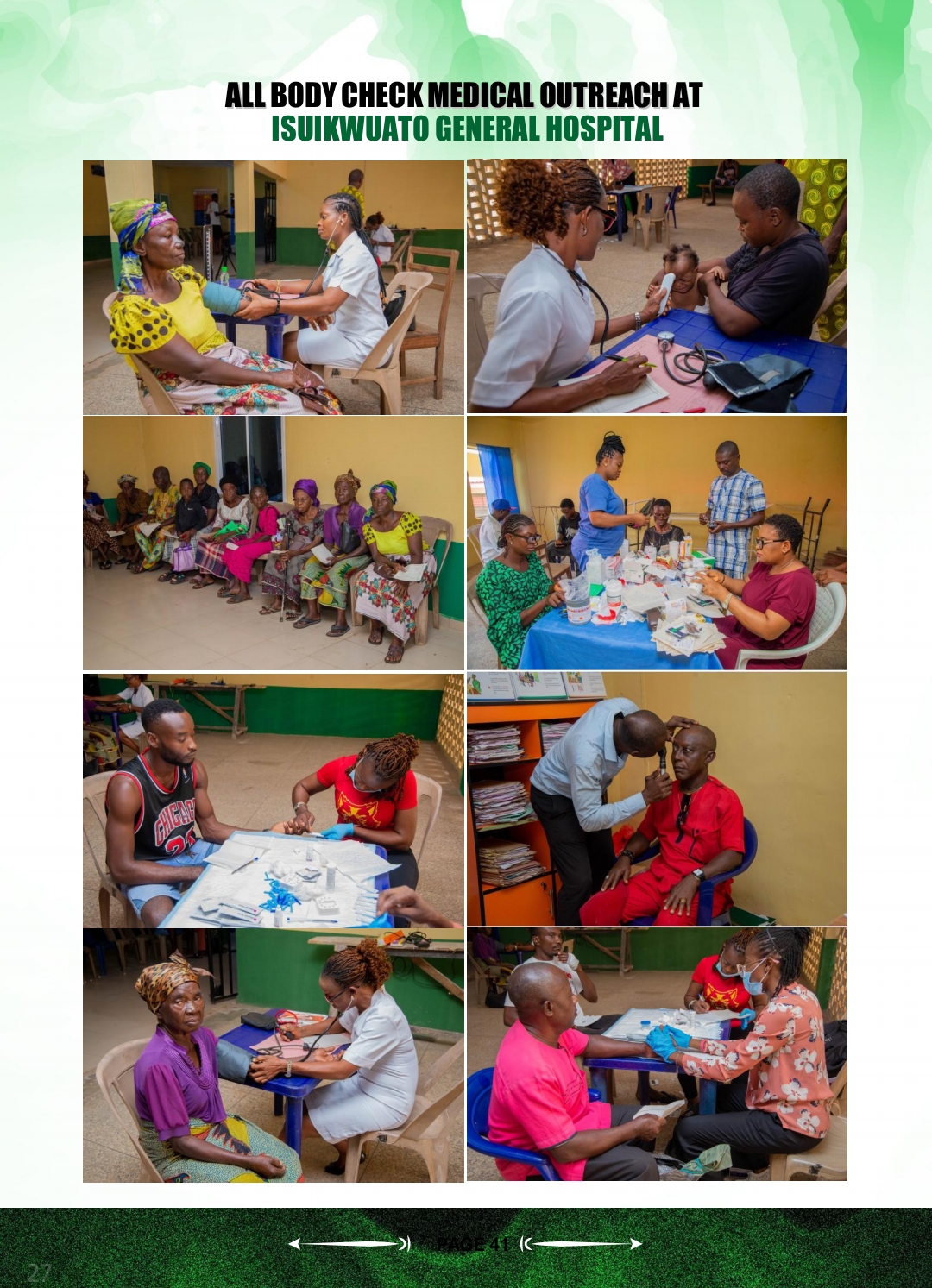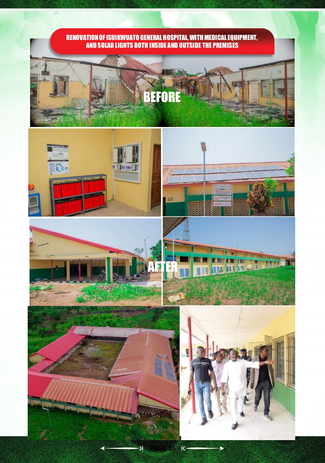 The health sector saw major upgrades under his tenure, including the renovation and equipping of Achara Hospital Uturu, installation of solar lights and repairs at Isuikwuato General Hospital, and the ongoing construction of Cottage Hospital Umuchieze and a Mother and Child Hospital in Isuikwuato. He also sponsored free medical and eye-care outreaches across communities.
