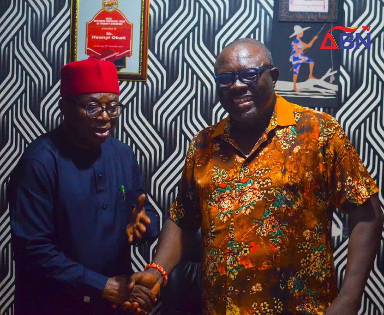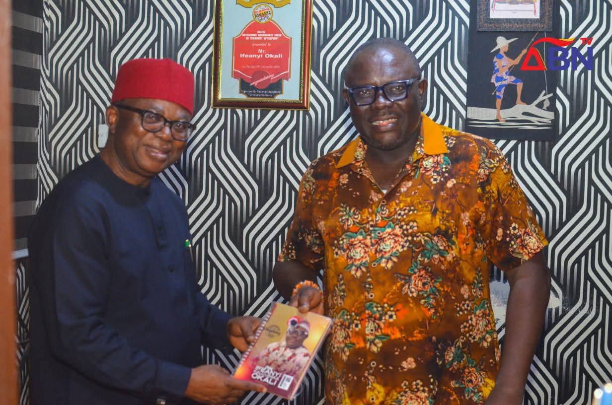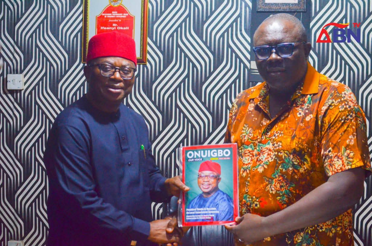 A former member of the House of Representatives, Hon. Sam Onuigbo, has paid a congratulatory visit to the Director of ABN TV & Radio, Chief Ifeanyi Okali, following his conferment with the prestigious chieftaincy title of “Okwuru Oha” by the Ebem Ohafia traditional institution.