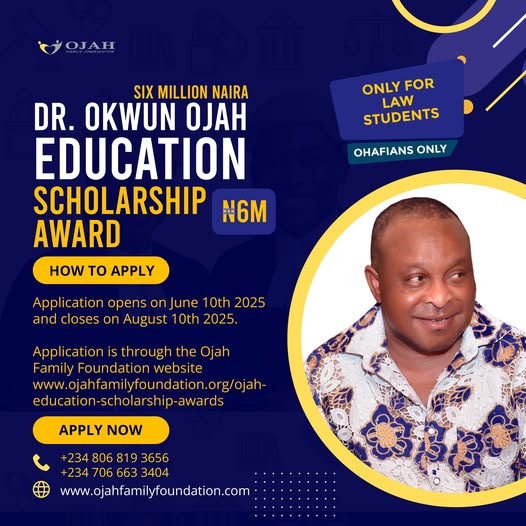 Interested candidates are advised to apply through the Ojah Family Foundation’s official website: