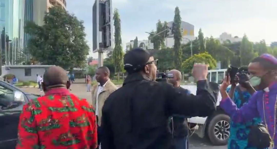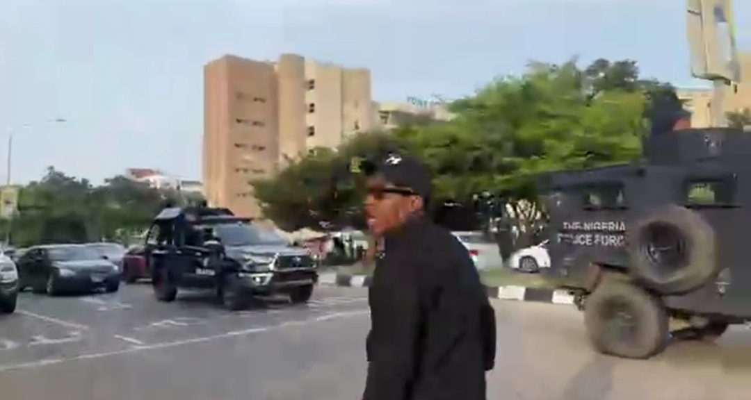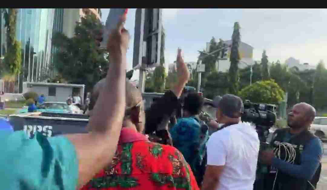 Eyewitnesses said the protesters, led by human rights activist Omoyele Sowore, Barrister Aloy Ejimakor, and Prince Emmanuel Kanu, the younger brother of the IPOB leader had gathered peacefully in front of Transcorp Hilton Hotel, Abuja, chanting solidarity songs and carrying placards with the inscription “Free Nnamdi Kanu Now.”