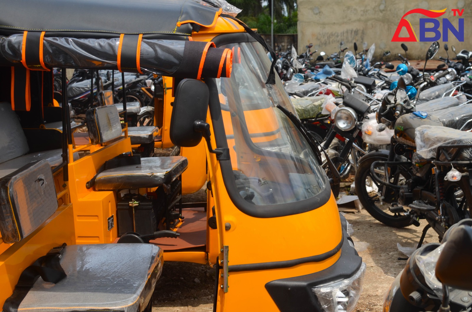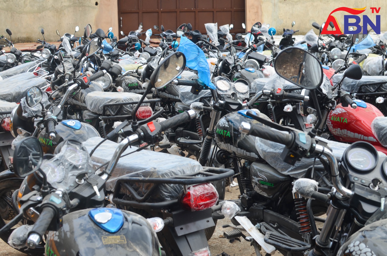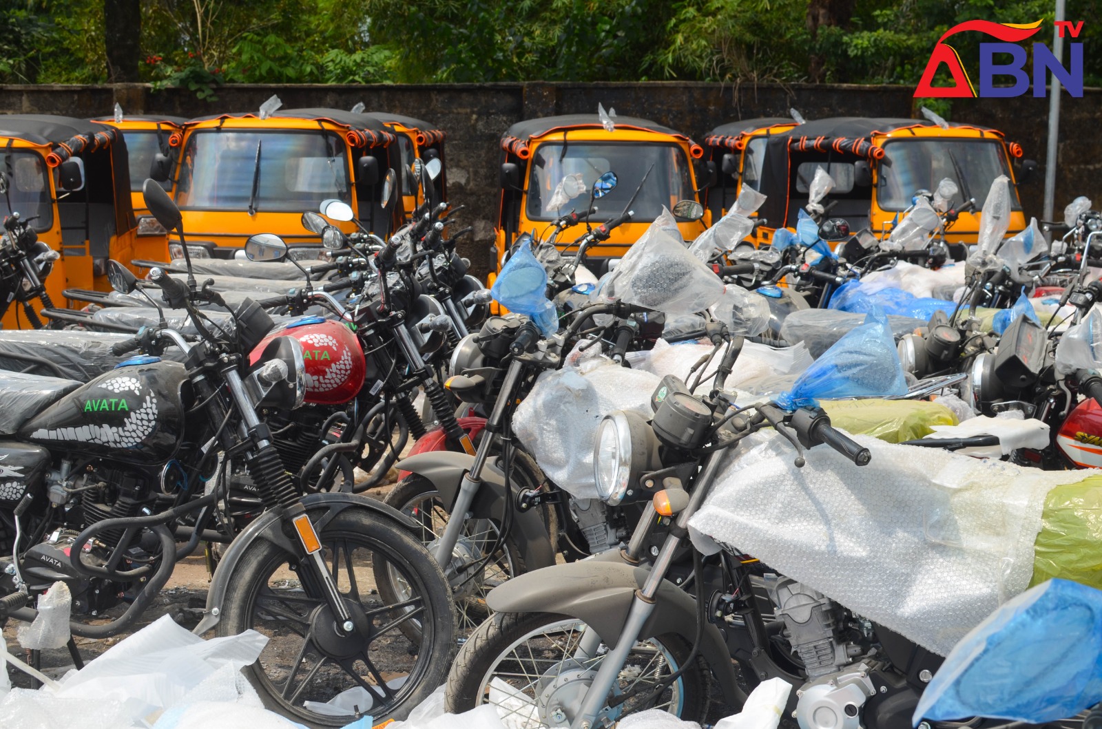 Items scheduled for distribution include 50 electric motorcycles, 30 Keke NAPEP tricycles, and 70 tricycle pickup vans, alongside 100 manual sewing machines and 200 industrial sewing machines to support tailoring and fashion enterprises.
