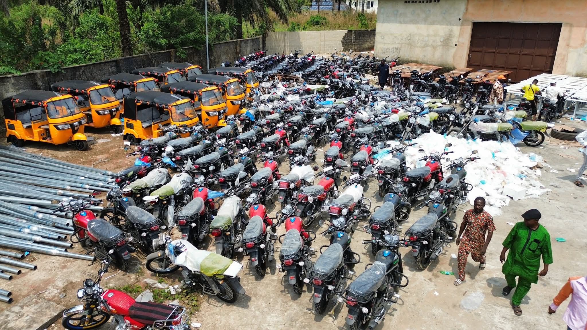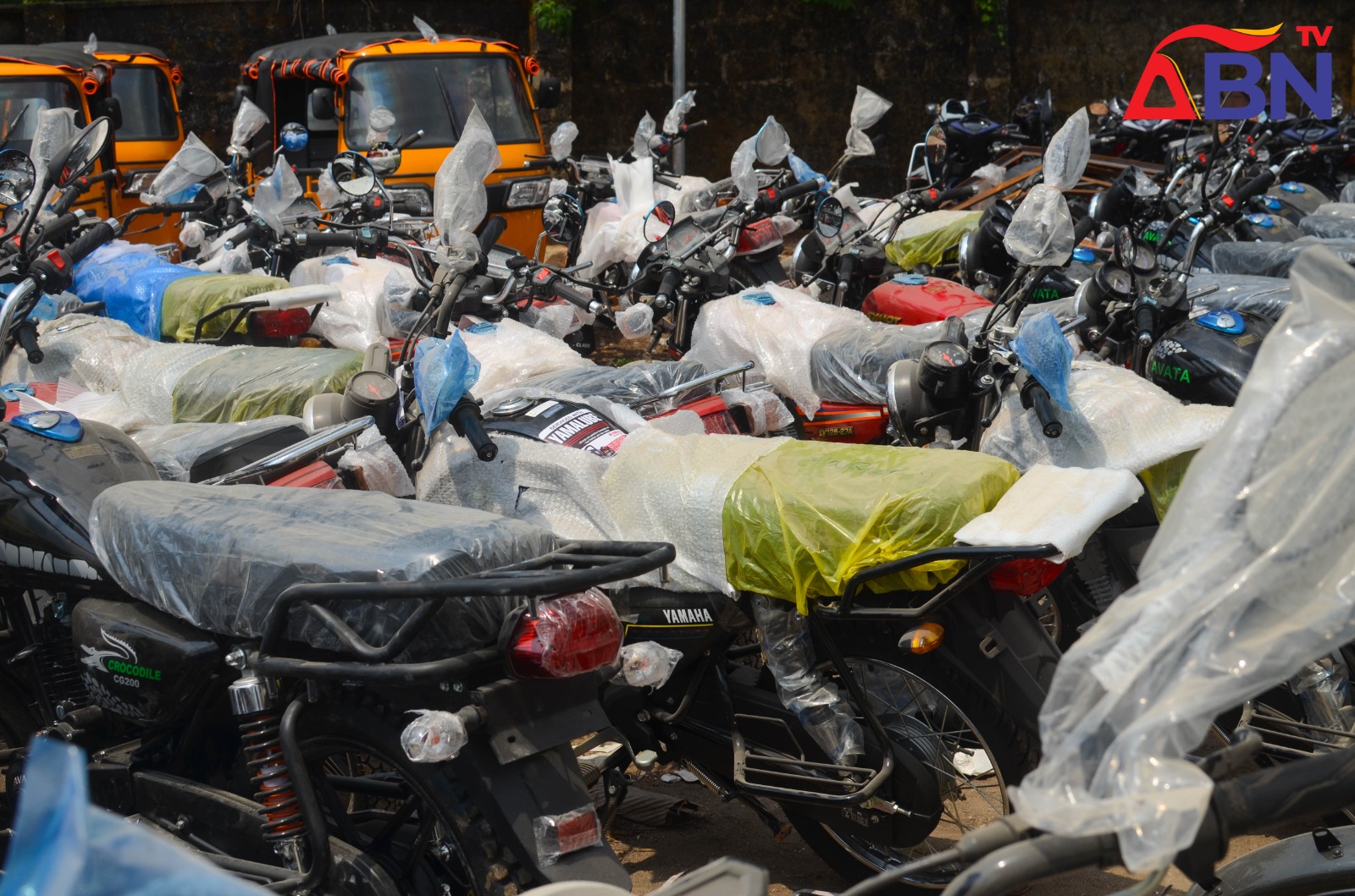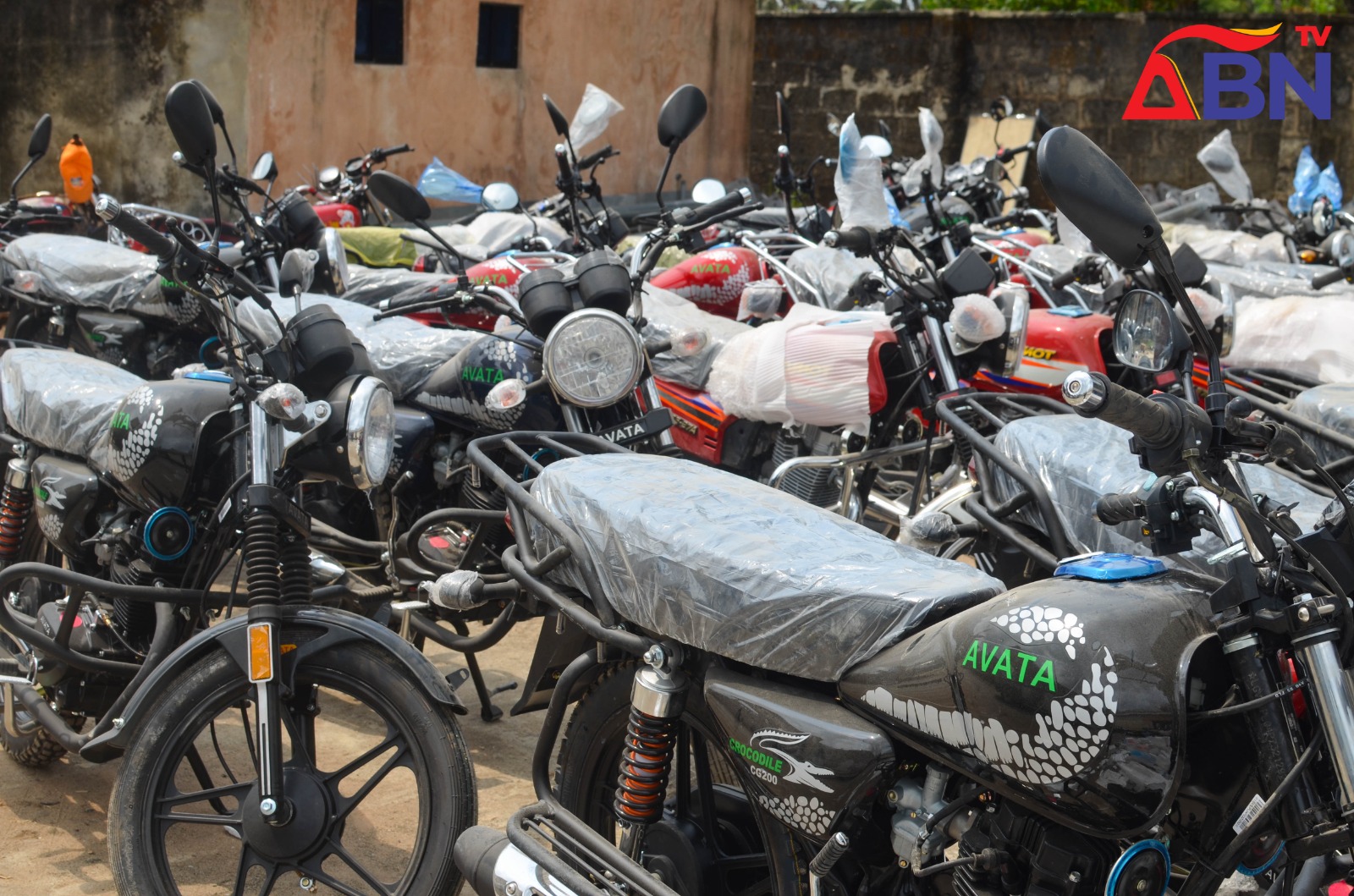 Items scheduled for distribution include 50 electric motorcycles, 30 Keke NAPEP tricycles, and 70 tricycle pickup vans, alongside 100 manual sewing machines and 200 industrial sewing machines to support tailoring and fashion enterprises.