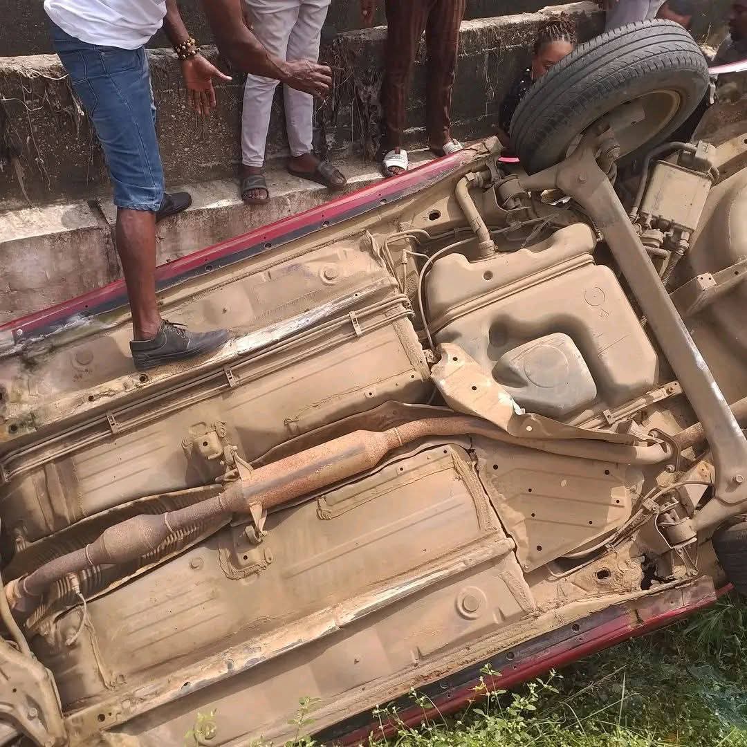 According to eyewitnesses, the car unexpectedly accelerated at high speed before somersaulting and plunging into a deep erosion pit by the roadside.